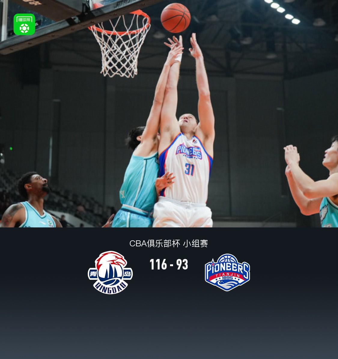 北京時(shí)間12月7日CBA俱樂部杯 小組賽,青島嶗山啤酒對(duì)陣天津先行者。半場(chǎng)青島66-45天津,最終青島116-93天津。