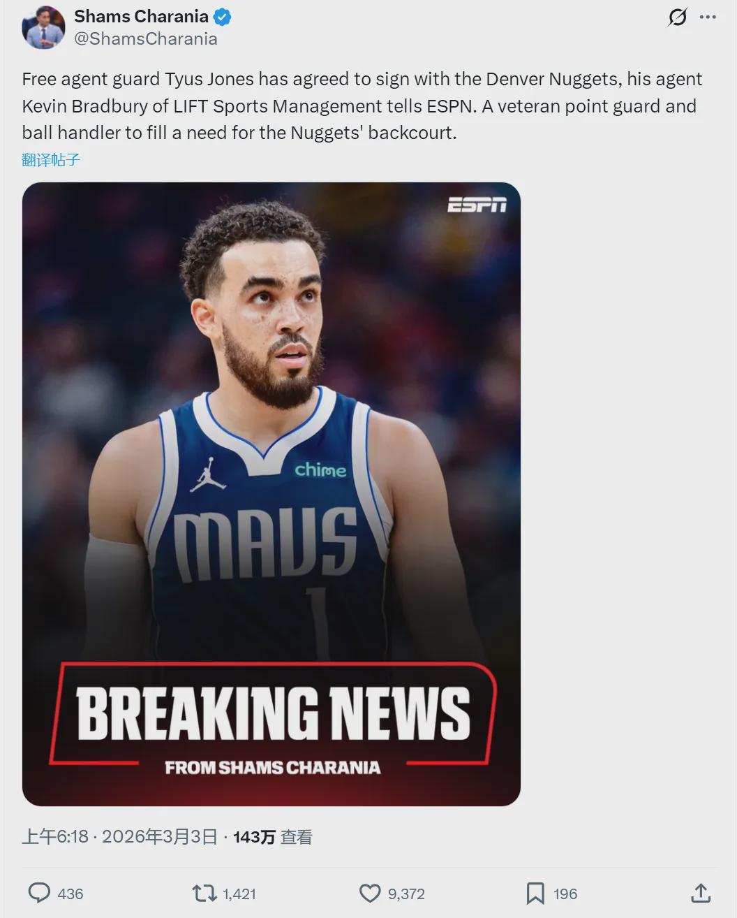 北京時(shí)間3月3日,據(jù)NBA名記Shams報(bào)道,泰厄斯-瓊斯同意加盟掘金,填補(bǔ)掘金后場的空缺。由于戈登和沃特森長期缺陣,掘金本來想簽一個(gè)鋒線,比如凱爾-安德森或者米德爾頓。但前者已經(jīng)加盟森林狼,后者并未被獨(dú)行俠買斷。
