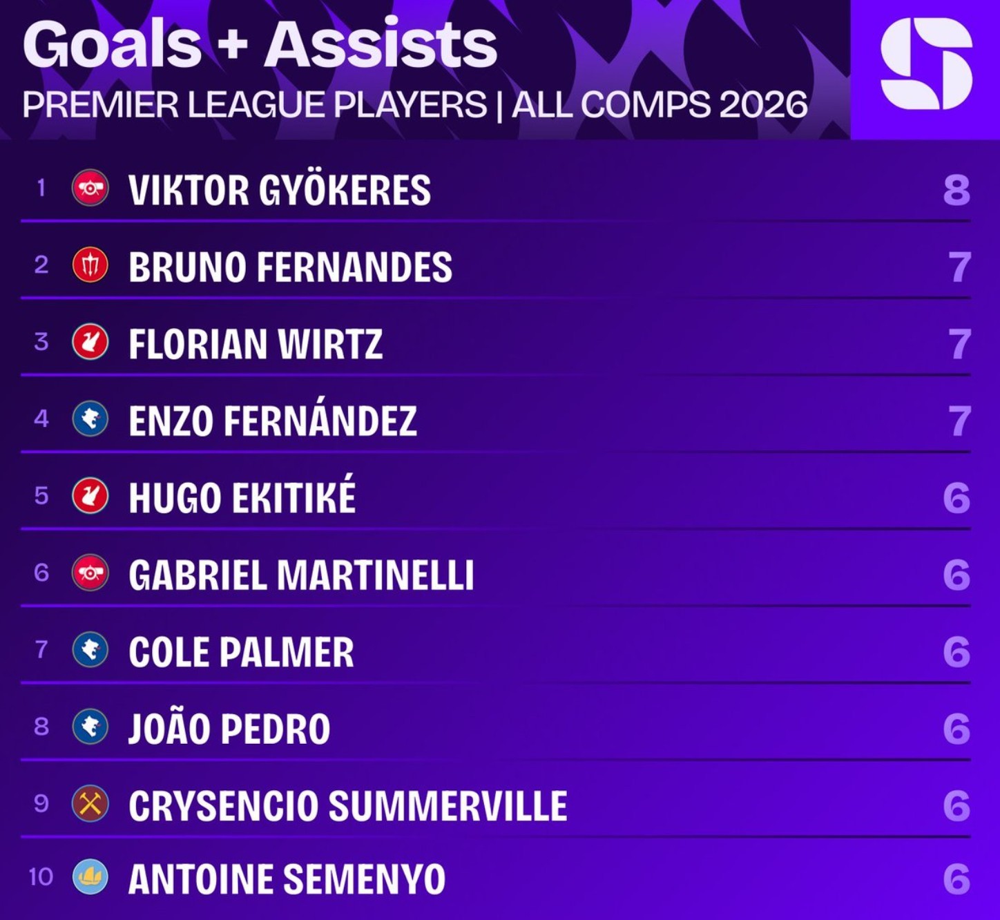 哲凱2026年各項賽事已直接參與8球,同期英超球員中最多