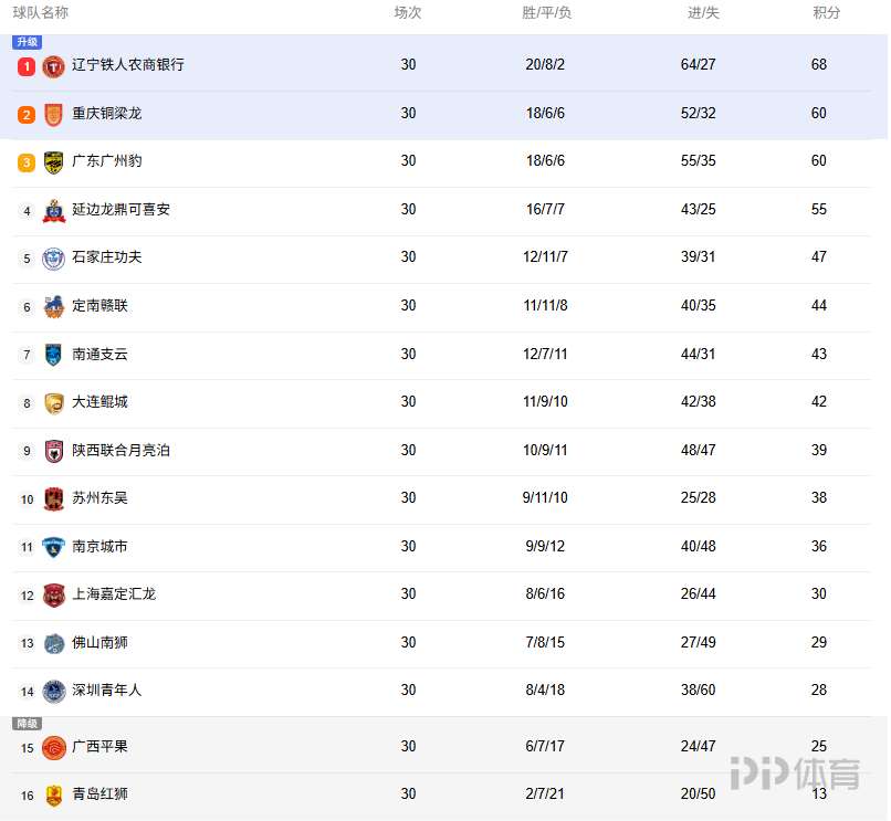 2025賽季中甲聯(lián)賽收官,遼寧鐵人奪冠攜手重慶銅梁龍升入中超,廣州廣州豹最終排名第三收官,青島紅獅和廣西平果降級(jí)。